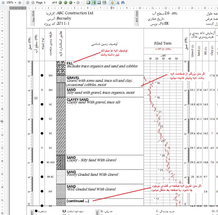 - امکان تعيين عمقي از گمانه که در هر صفحه لوگ ترسيم و چاپ ميشود (قبلاً لوگها فقط در هر 10 متر تهيه ميشد)
