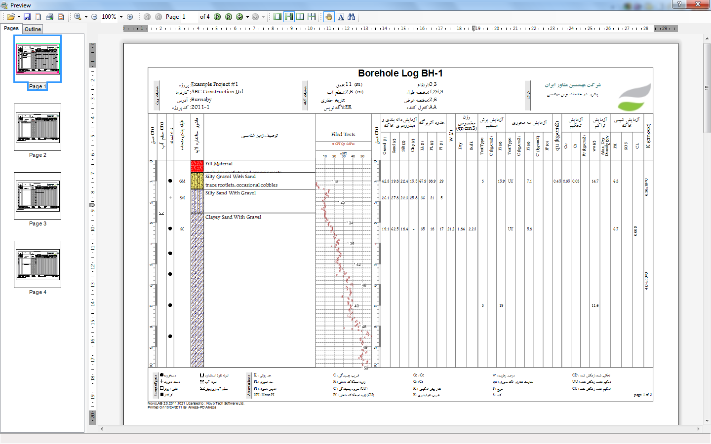 در نرم افزار NovoLAB، لاگ گمانه به صورت اتوماتيک بر اساس نتايج آزمايشهاي آزمايشگاهي تهيه ميشود. کاربر فقط لازم است لايه هاي هر گمانه را تعيين کند که آنهم جهت سهولت کار با برنامه، به صورت اتوماتيک قابل انجام است.