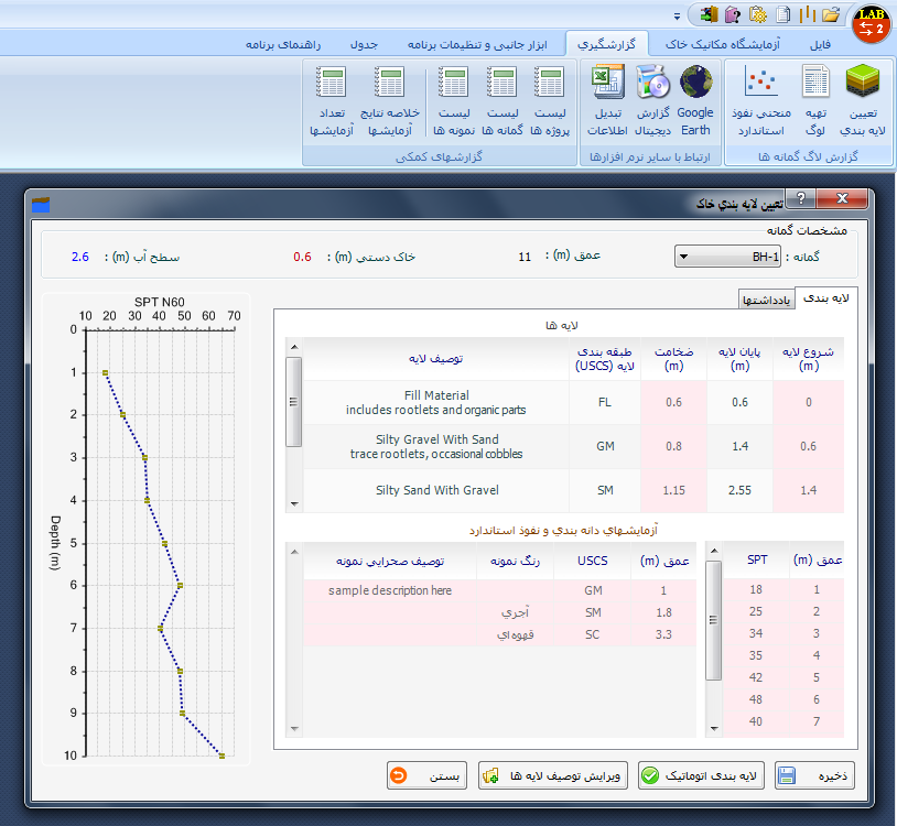 ثبت نمونه ها و آزمايشهاي SPT هر گمانه